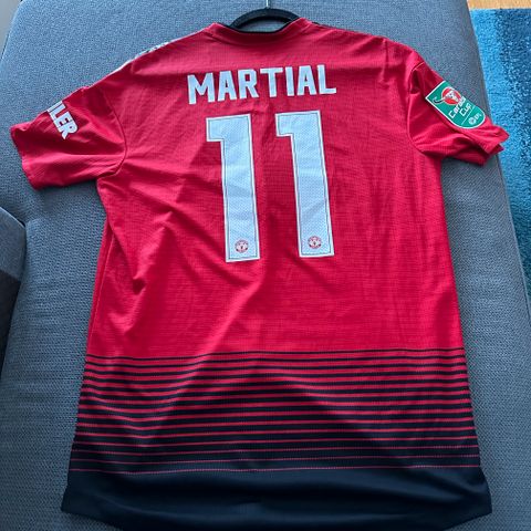 Selger denne match issued Anthony Martial Manchester United drakten. Drakten er gjort klar for en Carabao cup kamp i 2018/19 sesongen. Kan ikke vise til om den faktisk er brukt i en kamp, men drakten er i det minste klargjort for bruk til en kamp. Men muligens også brukt