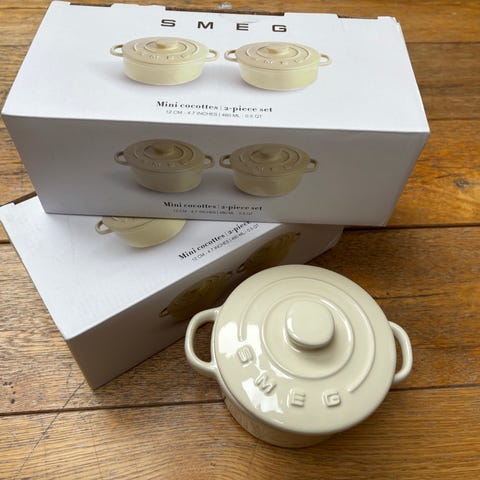 4 små minigryter fra Interstil. 2 sorte og 2 hvite. Ubrukte i originale esker. Diameter 10 cm.