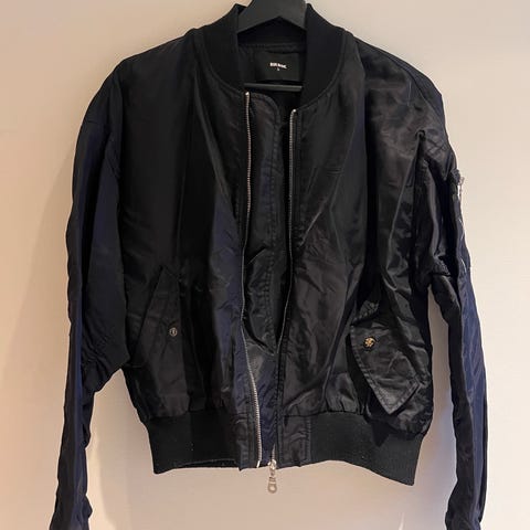 Sort bomberjacket fra Bik Bok. Fargen er matt svart, i et mykt og behagelig stoff. Fin vårjakke og sommerjakke.