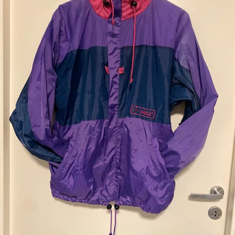 Fine farger str S, men den er mer som L. Vindjakke m hette