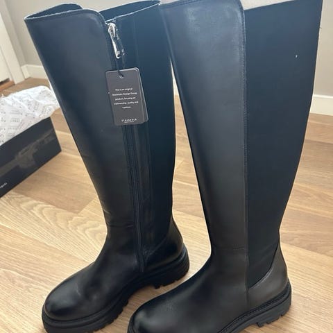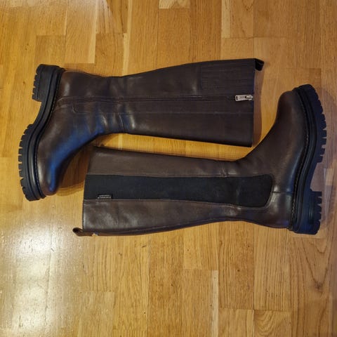 Stockholm høy støvler er helt ny, ekteskinn, mørkebrunn farge, uåpnet med pakke.
