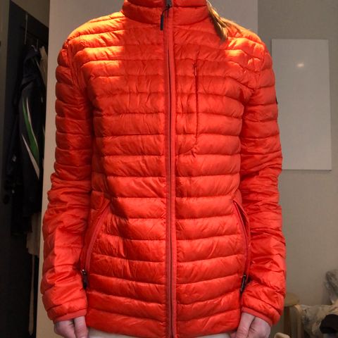 Dus og fin turkis-farge. Lett jakke med stretch i sidene. God hette. Pent brukt.