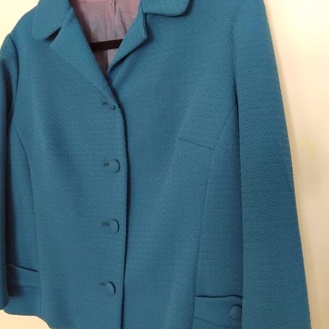 Grønt trikåstoff innvevde grønne glittertråder, kneooing forsn m et lite skjørt. Lengde: 55 cm, brystvidde 105 cm. Kan sendes
