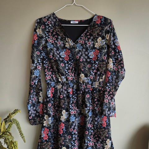 hverdagskjole i flerfarget design, størrelse 38. Kjolen har et unikt mønster og er laget for daglig bruk. Passer godt til ulike anledninger.