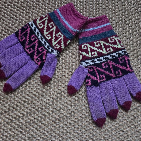 Helt ny hjemmestrikkede hansker i 100%ull. Str ca 7,5 og 8,5. Porto tilkommer. 200 pr dame og 250 for mann. Herre hanskene er lett tovet.