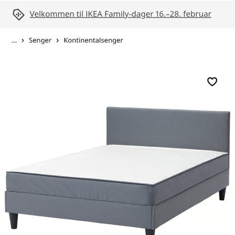 Dunvik kontinentalseng fra Ikea 180x200cm selges