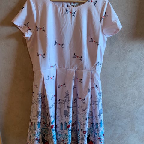 Kjempefin kjole fra Lindy Boop str 34, fint og lite brukt. Rekker til over knærne på meg som er 160 cm.