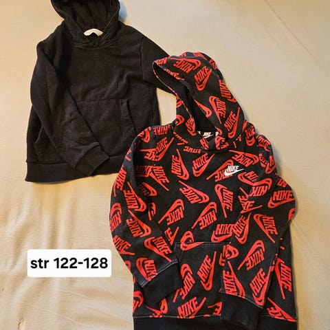 Klespakke, Hettejakker str 122/128, og 2 denimbukser str 128