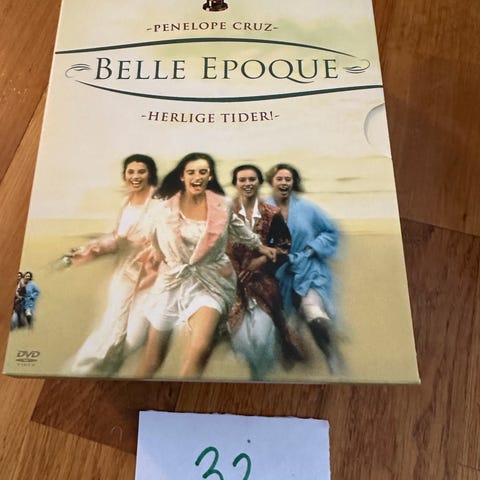 Pent brukt DVD med «Belle epoque» selges. Sprø spansk komedie om en ung desertør som forelsker seg i fire søstre i tur og orden mens han bor hjemme hos faren deres, en gammel kunstner.