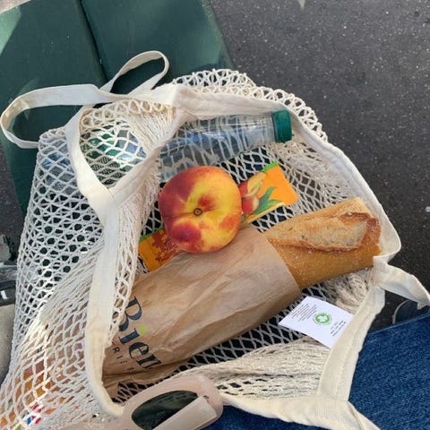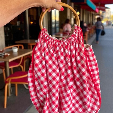 Solid nett i organisk materiale og håndtak i bambus.