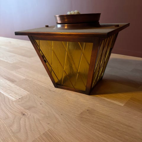 Det er malingsflekker på dekslet, som ikke er synlige når lampen er montert. Den originale keramiske lampeholderen ser ut som ikke fungerer. Kan gi med på kjøpet en modern plastikk lampeholder, hvis du trenger en reserve.