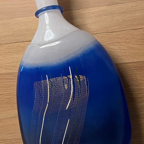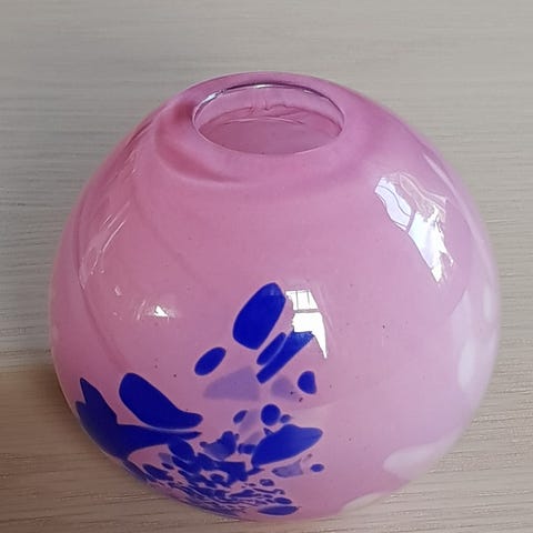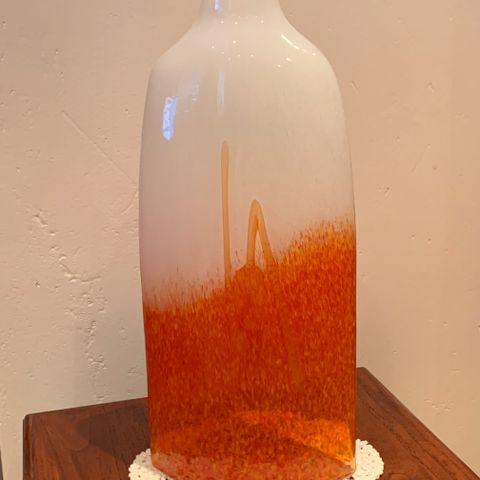 27 cm hÞy kunstverk av en vase i tungt glass. Formen er usymmetrisk og stÄr som pen dekorasjon i seg selv.