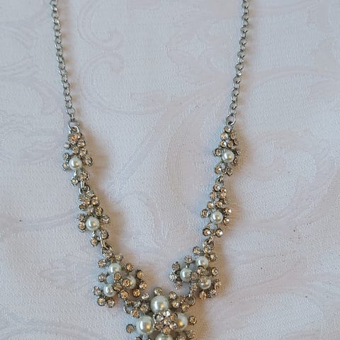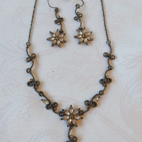 gammelt smykkesett i slitt eske - smykkene ser ubrukt ut
