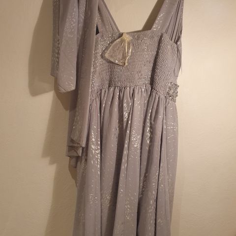Soul River festkjole i grå farge, størrelse 40. Kjolen har en tettsittende passform med høy hals og er laget av et ribbestrikket materiale. Egnet for formelle eller festlige anledninger.