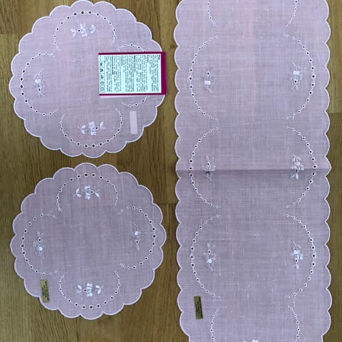 - 1 hvit bordløper i bomull fra Miljögården Design, med broderi hjerte og dusker. Mål: 145x43 cm uten duskene, målt med duskene + 18 cm.