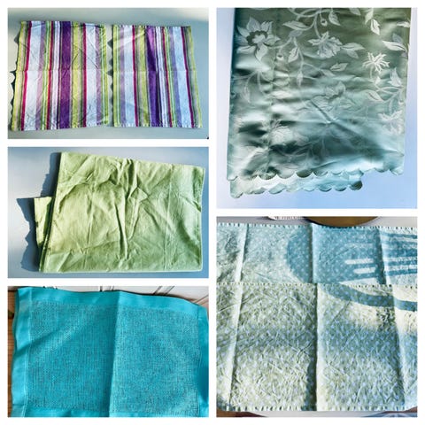 - 2 spisebrikker / bordbrikkker / dekkebrikker / brikker i bomull fra Sia, farge beige og hvit, stripete.