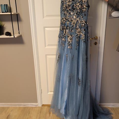 Denne kjolen, den er spesiell. Orginal en helt enkel kjole fra BIK BOK. Men den er sydd om på eget design hos en syerske. Brukt rester av en brudekjole for å piffe den opp. Absolutt ingen har lik. Perfekt som ballkjole eller til bryllup.