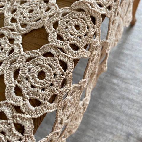 Flott, gammel finheklet duk/løper i hvitt. Tykk, "tung" duk som ligger veldig pent på bordet.