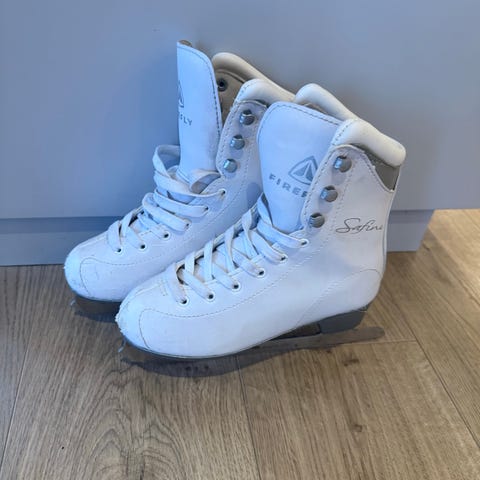 Pent brukte justerbare skøyter i str 29 til str 32. Skøytene er nylig slipt.
