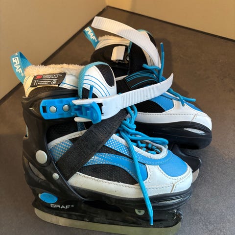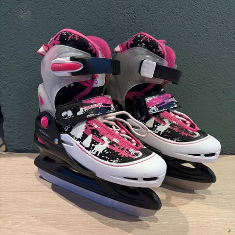 Skøytene er justerbare og passer str. 34, 35, 36 og 37. De vokser med barnet og kan brukes over flere sesonger. Skøytene har flere typer fester (borrelås, lisser og justerbare spenner) som gjør at de sitter svært godt på foten.