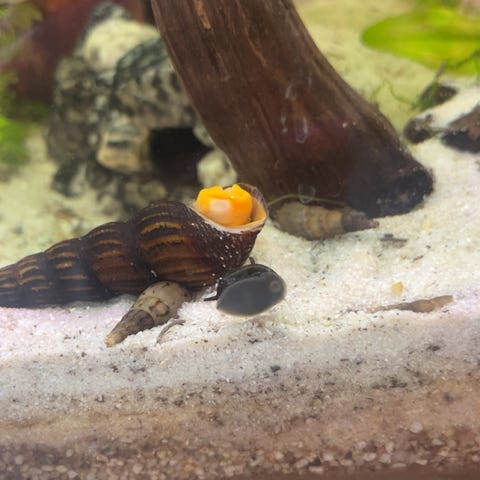 - De spiser opp alt av døde planter, matrester, døde fisker og andre snegler. Hvis de blir for mange så er det bare å knuse de så spiser f.eks guppy opp disse. Det finns mange forskjellige snegler som er både fine og morsomme og se på.