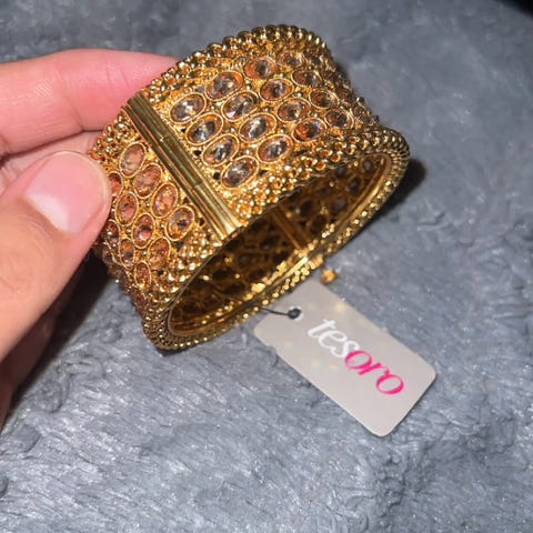 Flerlags stretch mansjett armbånd krystallsmykker. Gullfarget..