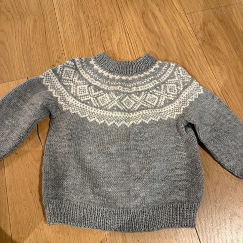 Strikket kveldbris genser til jente i str 18 mnd (1,5 år)