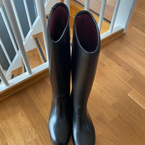 Hun som brukte disse var større i den ene foten så den ene ridestøvlen er i størrelse 33 og den andre er i 34. Den du har på venstre fot er str 33 og høyre er 34.