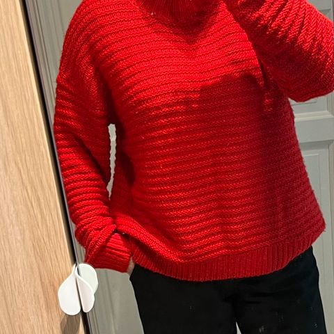 Off-shoulder rød strikkegenser fra H&M, str.XS. Pent brukt, ingen bruksmerker.