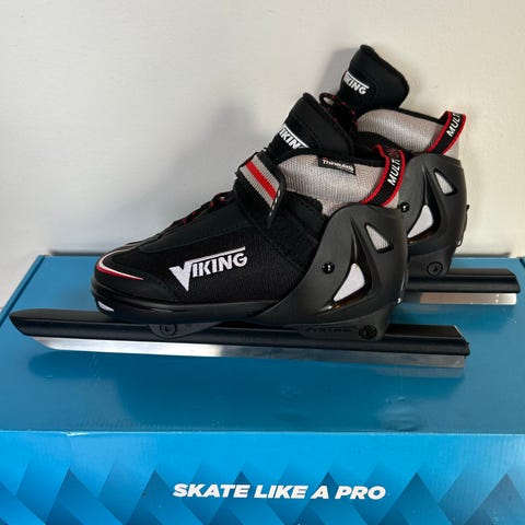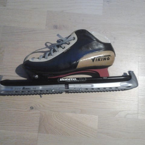 Viking klappskøyter selges. Skøytene er i god stand men har noen bruksmerker og en liten brett i tuppen på metallet (se bilde)