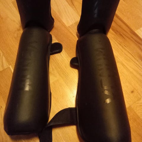 Leggbeskyttere: str M, pris 250 kr