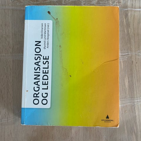 Selger diverse pensumbøker i organisasjon og ledelse. Bøkene er i generelt veldig god stand, pent brukt og kjøpt nye alle sammen. Kan sendes med Fiks ferdig: