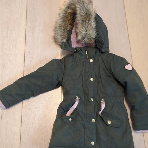 Svært pent brukt vinterjakke. Strammestrikk nederst på begge sider. Mange lommer, praktisk til små skatter og steiner! Er navnemerket på innsiden, men dette kan fint strykes over med navnelapper eller tusj. #vinterjakke #vinter #jakke