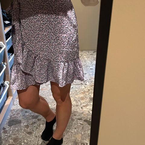 Ganske lys rosa med gullprikker kort sommerskjørt. Den vil passe S og M størrelse. Jeg kjøpte den i utlandet, men kommer ikke til å bruke den her. Den har aldri vært brukt så ny, men har ikke prislapp på den da jeg kastet den da jeg kjøpte den. Aldri vasket eller noe. Det er virkelig vakkert og vil gjøre en ung jente veldig glad.