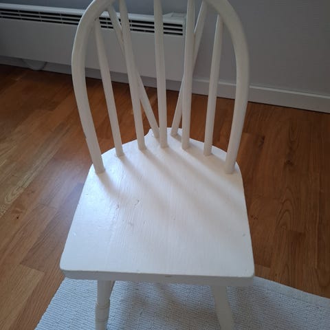 Ubehandla trestol med oppbevaring. Meget pen stol med mange muligheter.