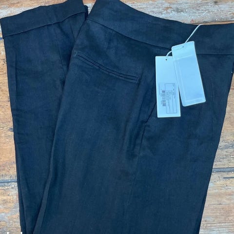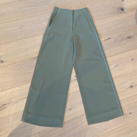 Selger denne flotte buksen fra Arket i størrelse 34. Den er i en behagelig blanding av viskose, polyamid og elastan, med pene legg foran og beltehemper i midjen.