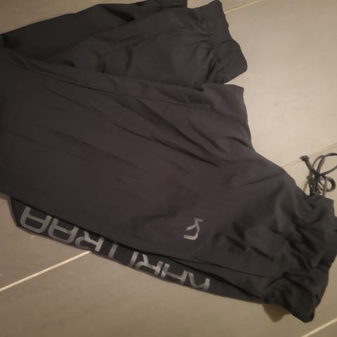 Lappen er klipt av på buksen, men begge er størrelse L