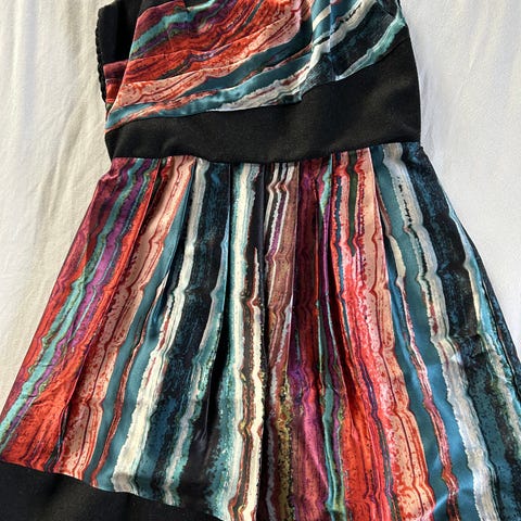 Som ny elegant festkjole lagt av god kvalitet silke perfekt til julebord! brukt kun en gang. Lengte er litt over kneet. Vare er fra dyrefritt og røktfritt hjem. Du kan finne flere fine klær fra min andre annonser :)