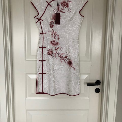 Denne elegant og tradisjonell kinesisk Qipao/Cheongsam er håndlaget i en luksusbutikk i Shanghai. Materialet er silke. Vare er fra dyrefritt og røykfritt hjem. Du kan finne flere fine klær fra min andre annonser. :)