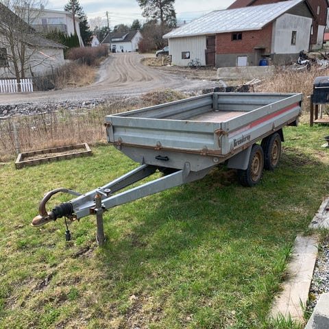 Hei. Selger en meget nyttig og praktisk buster tilhenger, da vi er ferdig med det vi trengte den til. Det er lagt inn stålplater i bunnen på den å baklysene er av nyere dato.