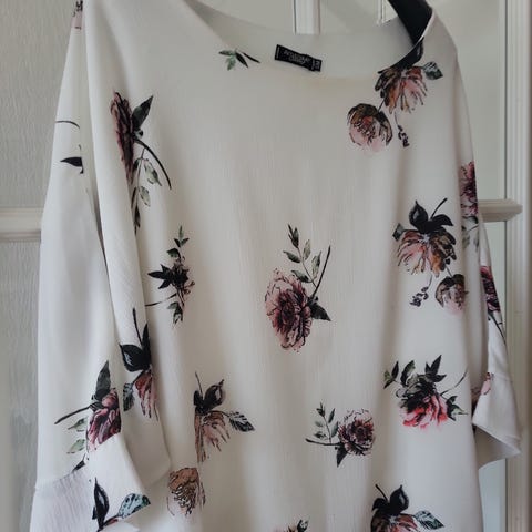 Toppen er foret og holder seg fint. Kan vaskes. Erm 3/4. Pent brukt og kan brukes til de fleste anledninger..