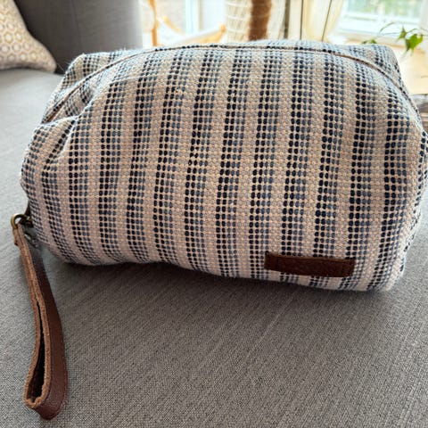 Denne vesken er laget i økologisk kraftig bomullsstoff og har et vanntett innerfôr. Det gjør at den egner seg godt til til toalettveske eller sminkepung også!