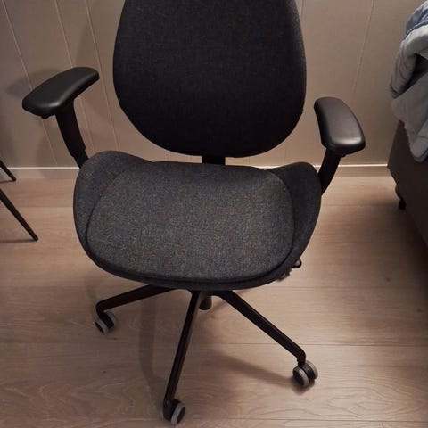 God og behagelig kontorstol selges billig. Lite brukt. Trekket kan tas av og vaskes. Gode justeringer. Slitesterk trekkstoff.