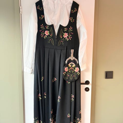 Med bunadskjorte str XL og vesken. Sølje er bare for bildene.