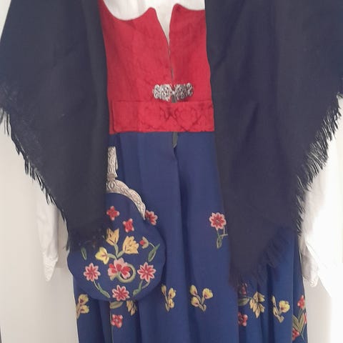 Broderiet på bunnen er ikke med, da dette er en eldre drakt med annen utførelse.