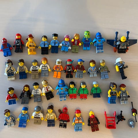 Selger over 100 lego figurer, dyr og tilbehør. Her er det mest av lego city, perfekt til de som trenger mange forskjellige figurer.