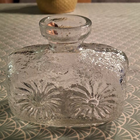 Prestekrave blomster Margeritter vintage Tsjekkia Retro 1970 tallet pressglass blomsterglass glassvase design retro 70'