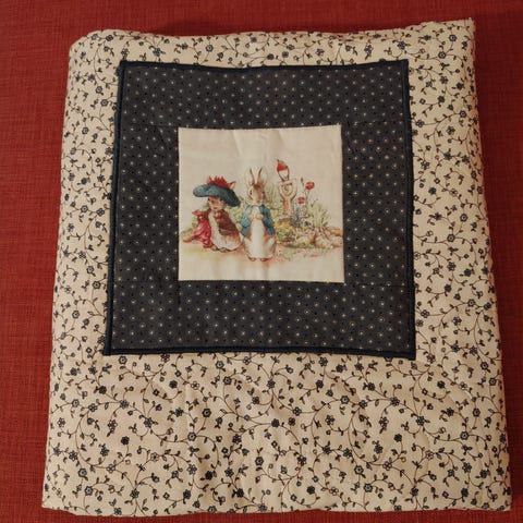 Håndsydd quilt i temaet Den lille larven aldrimett. Måler 126 x 76 centimeter i høyden og bredden. Perfekt som babyteppe!
