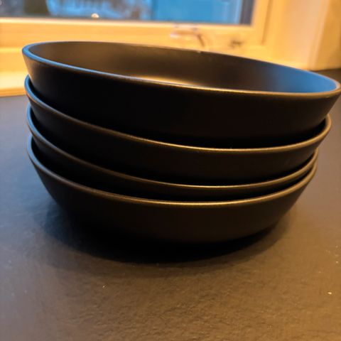 Pent brukte frokosttallerkener fra Eva Solo nordic kitchen.