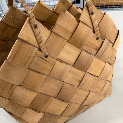 Veldig koselig og fargerik plastkurv med lokk. Kurven er ca 40 cm x 30 cm og høyde 31 cm.
